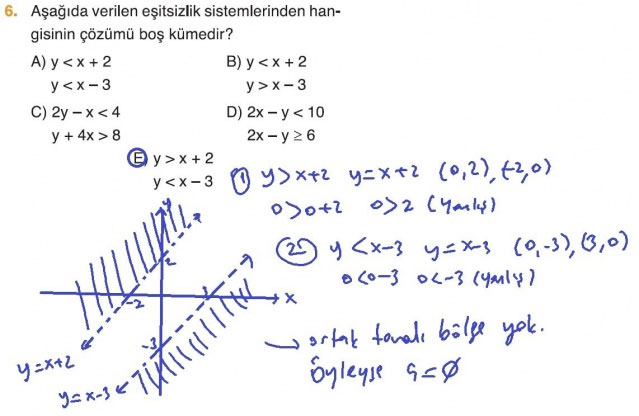 6. Aşağıda verilen eşitsizlik sistemlerinden hangisinin çözümü boş kümedir?