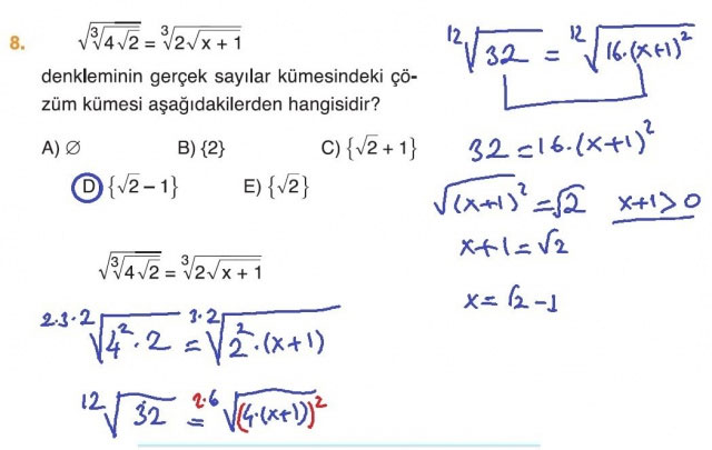 8. ……….denkleminin gerçek sayılar kümesindeki çözüm kümesi aşağıdakilerden hangisidir?