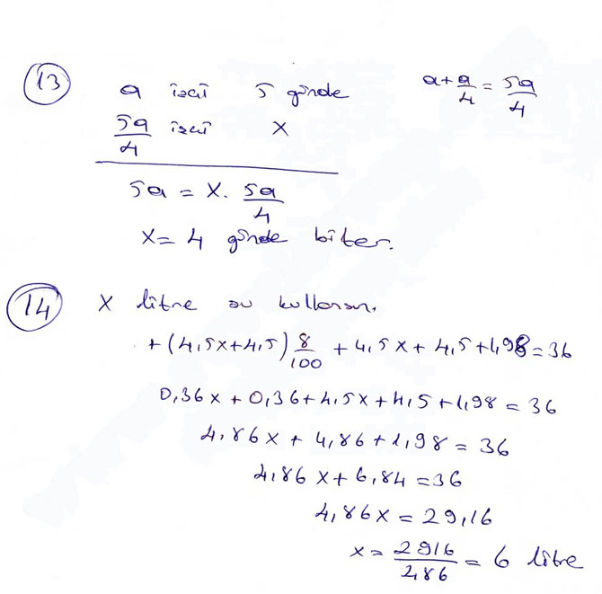13. Bir grup işçi bir işi 5 günde bitirebilmektedir. İşçi sayısı %25 artırılırsa aynı iş kaç günde biter?