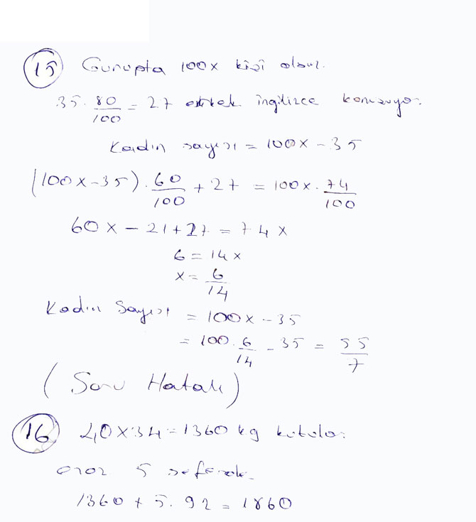 15. Bir gruptaki 35 erkeğin %80 i, kadınların %60 ı İngilizce konuşabilmektedir.