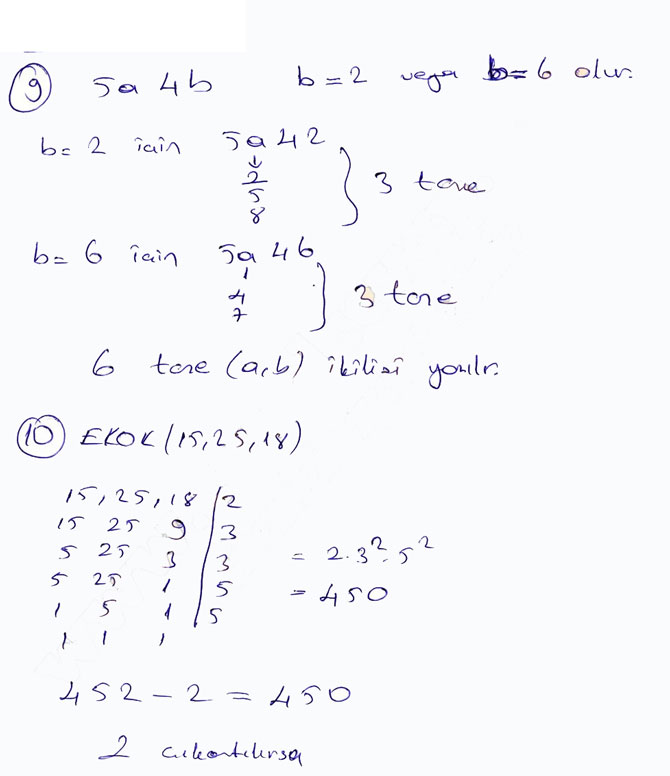 9. Dört basamaklı 5a4b sayısının 3 ile bölümünden kalan 1 ve 4 ile bölümünden kalan 2 dir. Buna göre kaç farklı sıralı İkilisi vardır?