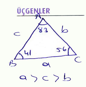 Bir ABC üçgeninde m(BAC) = 83° ve m(ABC) = 41° dir. Buna göre bu üçgenin kenar uzunluklarını sıralayınız.