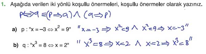 1. Aşağıda verilen iki yönlü koşullu önermeleri, koşullu önermeler olarak yazınız,