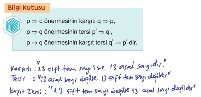 3. p : “13 asal sayı ise 13 çift tam sayıdır.” önermesinin tersini, karşıtını ve karşıt tersini yazınız.