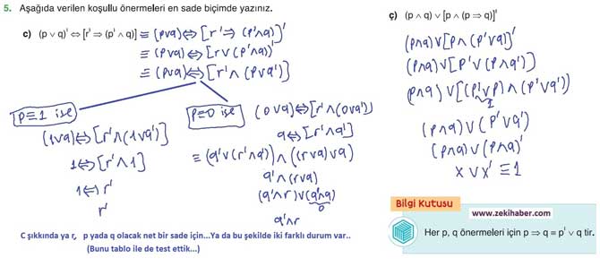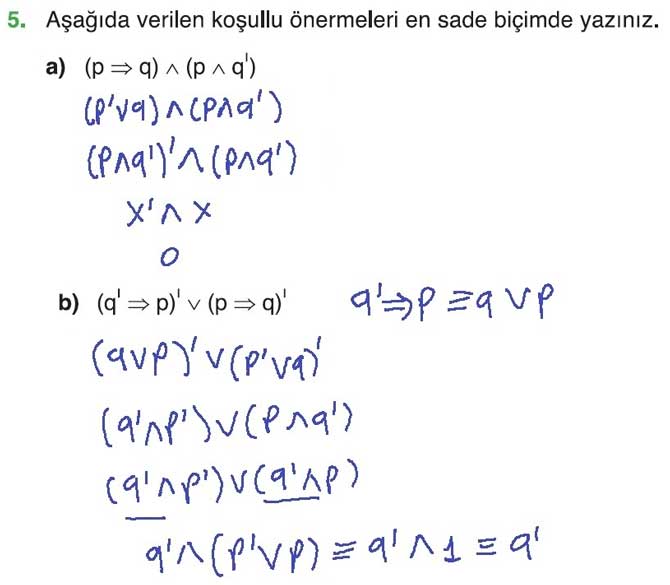 5. Aşağıda verilen koşullu önermeleri en sade biçimde yazınız.