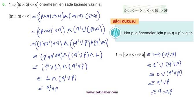 6. 1 => [(p Λ q) <=> q] önermesini en sade biçimde yazınız.