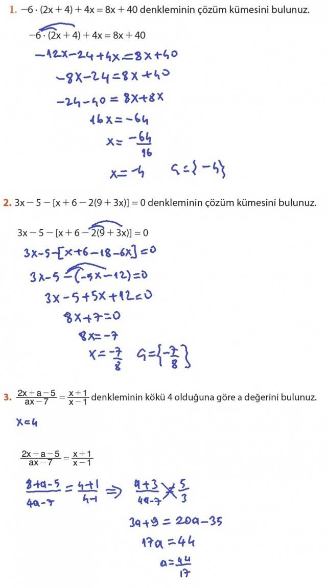 2. 3x – 5 – [x + 6 – 2(9 + 3x)] = 0 denkleminin çözüm kümesini bulunuz.