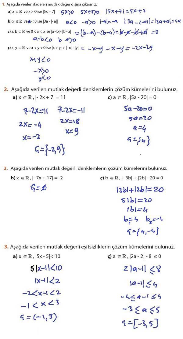 2. Aşağıda verilen mutlak değerli denklemlerin çözüm kümelerini bulunuz.