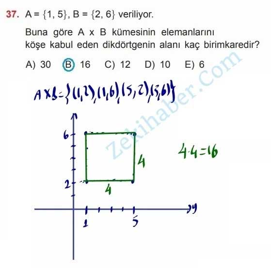 37. A = {1, 5}, B = {2, 6} veriliyor.