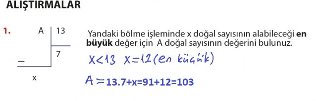 1. Yandaki bölme işleminde x doğal sayısının alabileceği en büyük değer için A doğal sayısının değerini bulunuz.