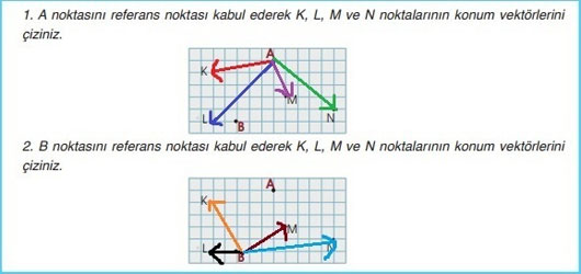 2. B noktasını referans noktası kabul ederek K, L, M ve N noktalarının konum vektörlerini çiziniz.