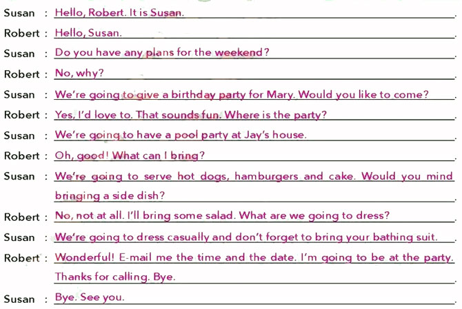 Maryam : Good, thanks. Listen, I'm going to have a bithday party next Friday. Do you want to come. ? (Say you’re going to give a birthday party and invite him to your party.)