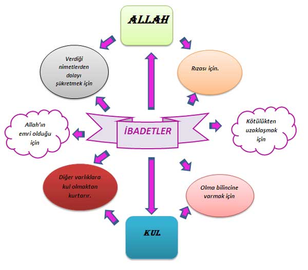 İbadetlerle ilgili bir kavram haritası örneği aşağıdaki gibidir.