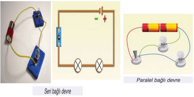 Seri ve paralel bağlı ampullerden oluşan birer devre şeması