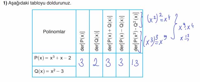 4) Aşağıdaki işlemlerin eşit olduğu polinomları bulunuz.