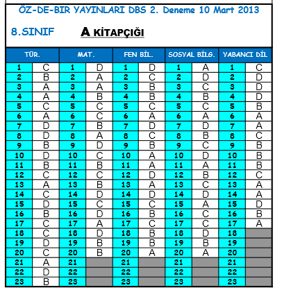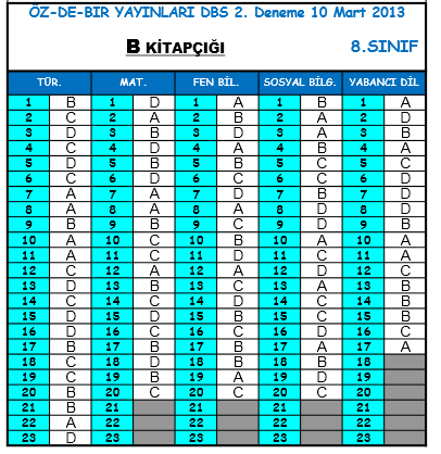 10 Mart 2013 Özdebir 8. Sınıf SBS-2 Cevap Anahtarı