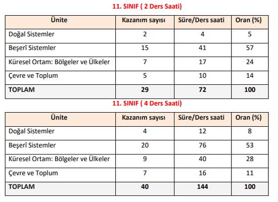 COĞRAFYA DERSİ 11. SINIFLAR ÖĞRETİM PROGRAMI 2 DERS SAATİ