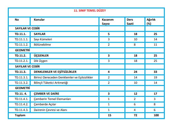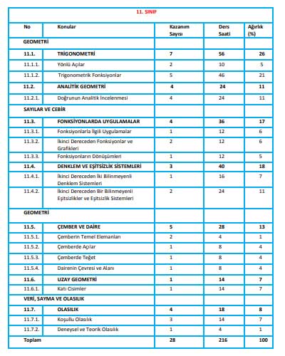 11. Sınıf Matematik müfredatı ile ilgili detaylı bilgiye buradan ulaşabilirsiniz. Tıklayınız