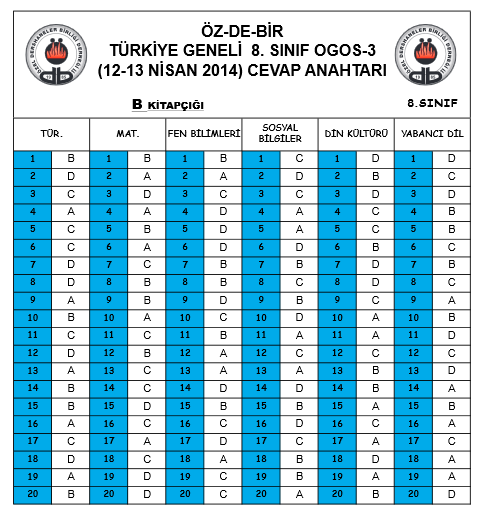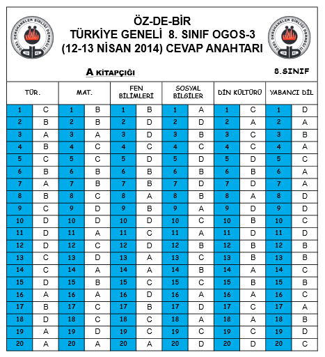 2014 Özdebir 8. Sınıf Merkezi Sistem Ortak Sınavı 3. Deneme Cevap Anahtarı (12-13 Nisan 2014)