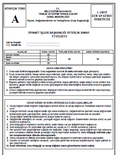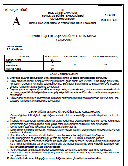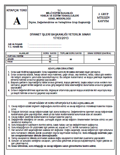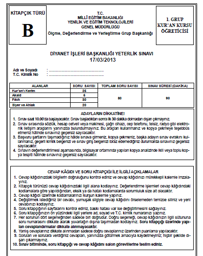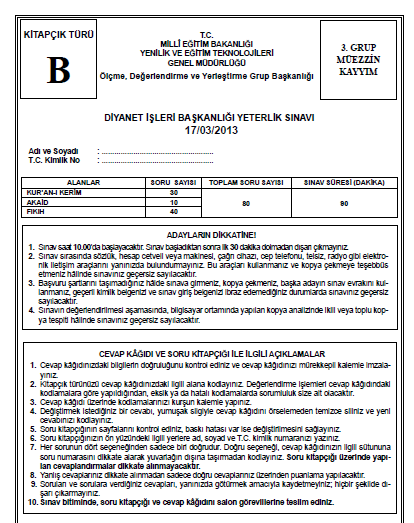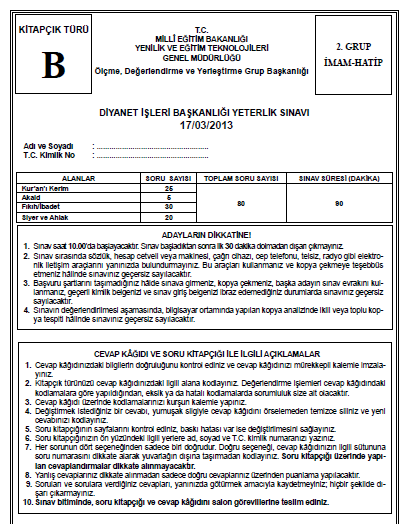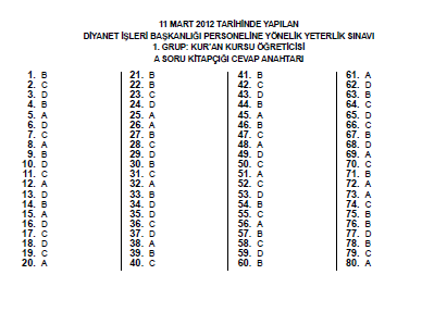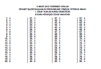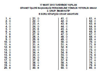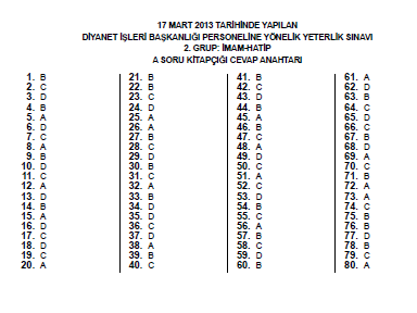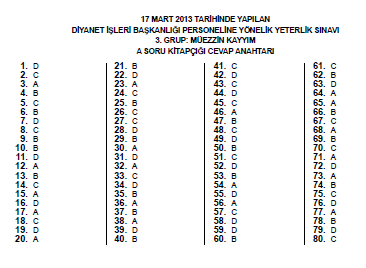 17 Mart 2013 Diyanet Yeterlilik Sınavı Cevap Anahtarı