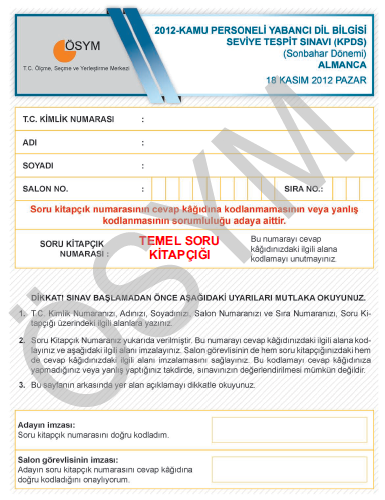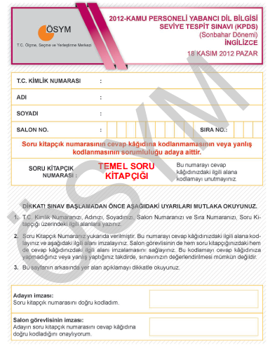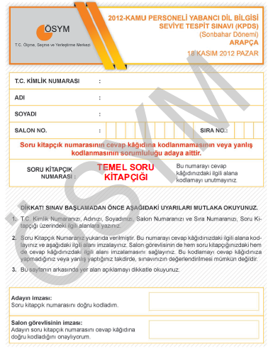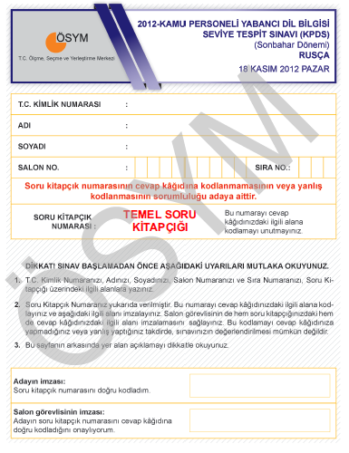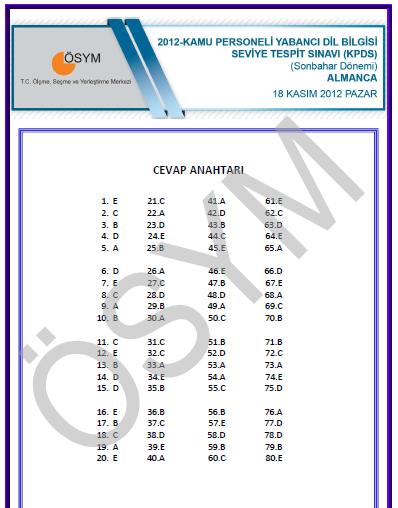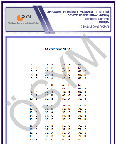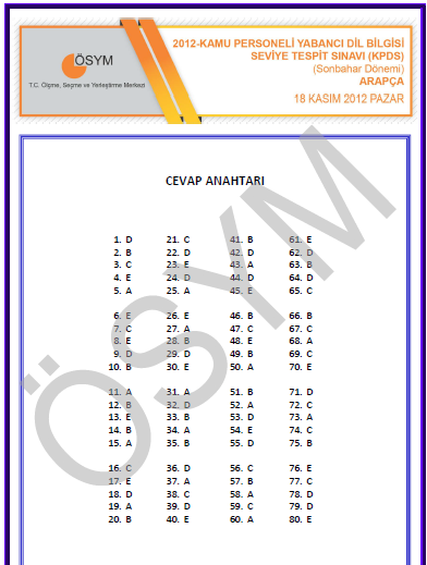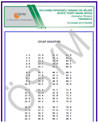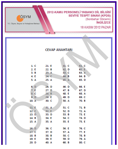18 Kasım 2012 KPDS Cevap Anahtarı yayınlandı