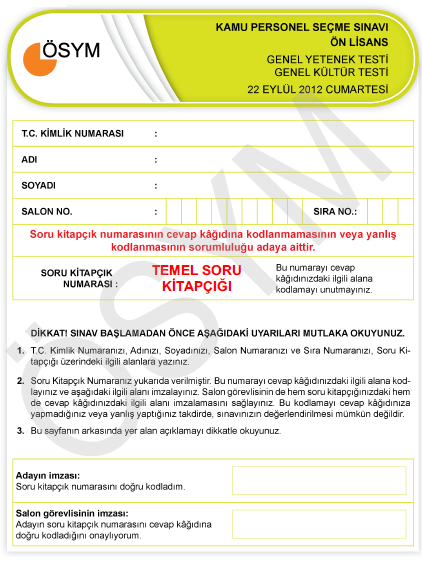 2012 KPSS Ortaöğretim Genel Yetenek ve Genel Kültür Cevap Anahtarları yayınlandı