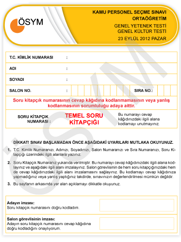 2012 KPSS Ortaöğretim Genel Yetenek ve Genel Kültür Cevap Anahtarları yayınlandı