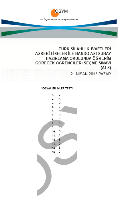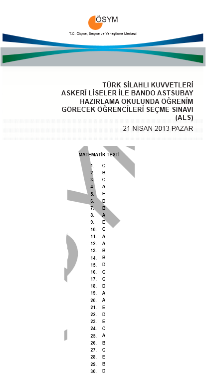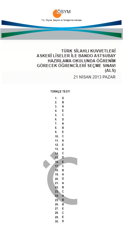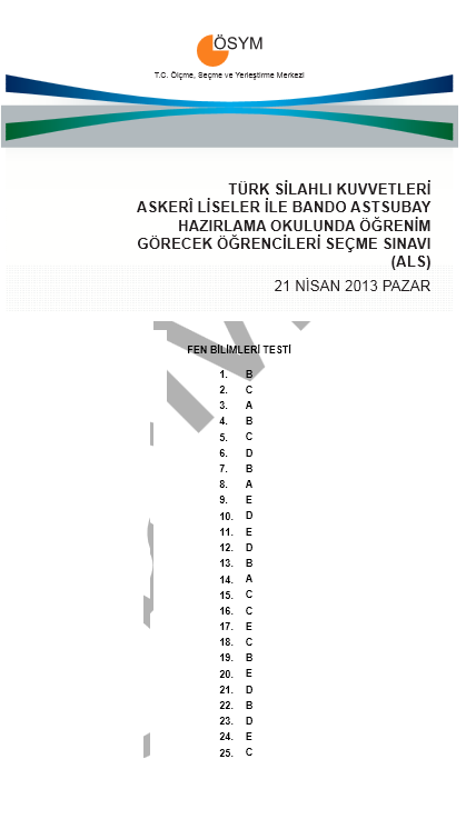 2013 ALS - Askeri Lise Sınavı Cevap Anahtarı