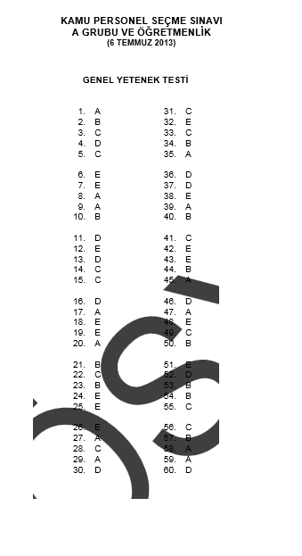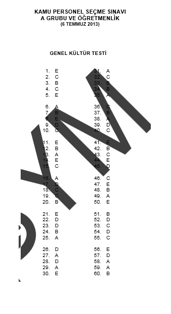 2013 KPSS Genel Yetenek ve Genel Kültür Cevap Anahtarı
