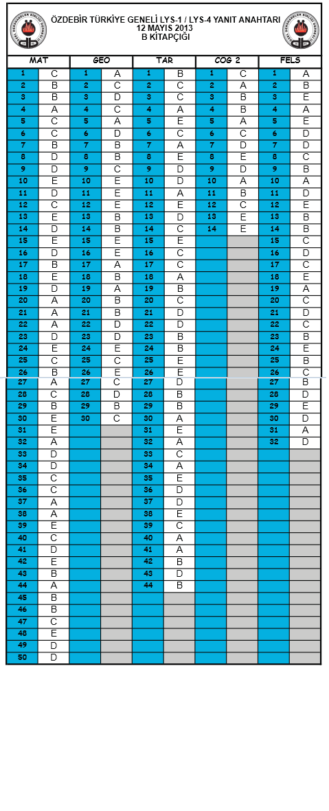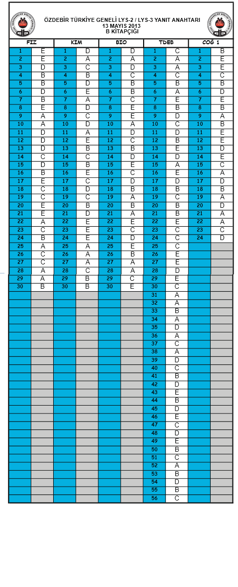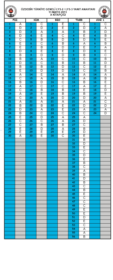 2013 Özdebir LYS Deneme Sınavı Cevap Anahtarı - 12 - 13 Mayıs