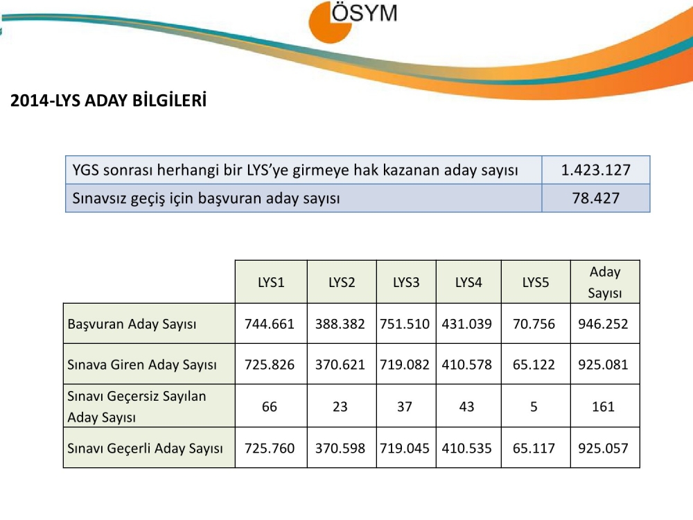 2014-LİSANS YERLEŞTİRME SINAVLARI SAYISAL BİLGİLER