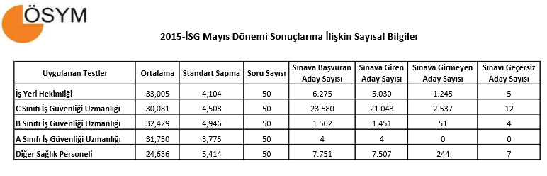 23 Mayıs 2015 tarihinde yapılan 2015-İSG Mayıs Dönemi Sınavının, değerlendirme işlemleri tamamlanmıştır.