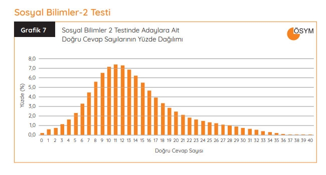 Sosyal Bilimler 2 Testinde Adaylara Ait Doğru Cevap Sayılarının Yüzde Dağılımı