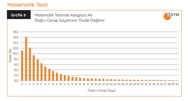 Matematik Testinde Adaylara Ait Doğru Cevap Sayılarının Yüzde Dağılımı