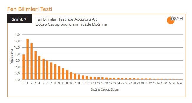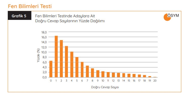 Fen Bilimleri Testinde Adaylara Ait Doğru Cevap Sayılarının Yüzde Dağılımı
