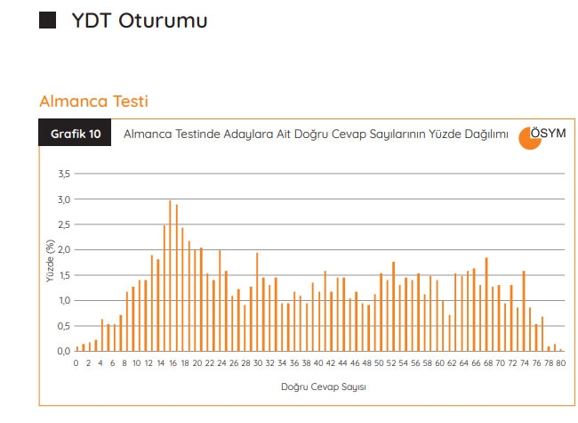 Almanca Testinde Adaylara Ait Doğru Cevap Sayılarının Yüzde Dağılımı