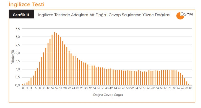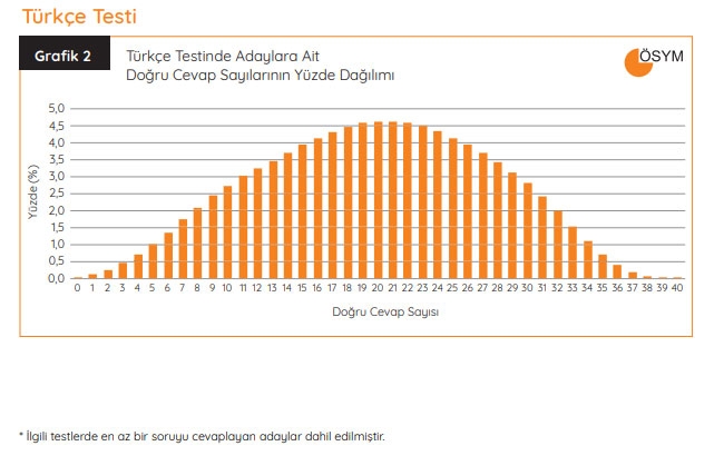 Türkçe Testinde Adaylara Ait Doğru Cevap Sayılarının Yüzde Dağılımı