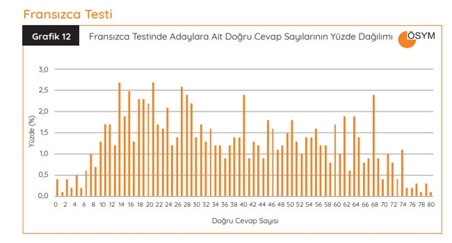 Fransızca Testinde Adaylara Ait Doğru Cevap Sayılarının Yüzde Dağılımı