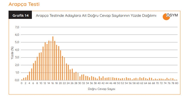 Arapça Testinde Adaylara Ait Doğru Cevap Sayılarının Yüzde Dağılımı
