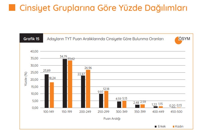 Adayların TYT Puan Aralıklarında Cinsiyete Göre Bulunma Oranları