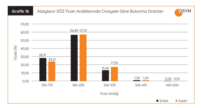 Adayların SÖZ Puan Aralıklarında Cinsiyete Göre Bulunma Oranları