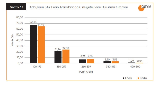 Adayların SAY Puan Aralıklarında Cinsiyete Göre Bulunma Oranları