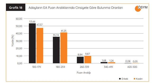 Adayların EA Puan Aralıklarında Cinsiyete Göre Bulunma Oranları