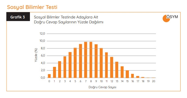Sosyal Bilimler Testinde Adaylara Ait Doğru Cevap Sayılarının Yüzde Dağılımı