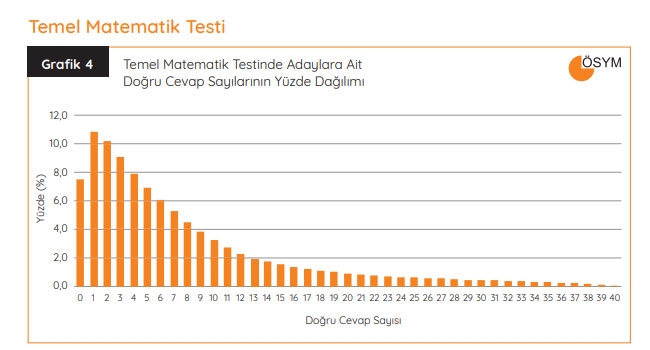 Temel Matematik Testinde Adaylara Ait Doğru Cevap Sayılarının Yüzde Dağılımı