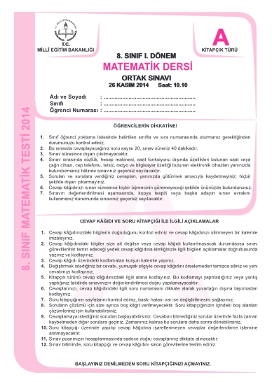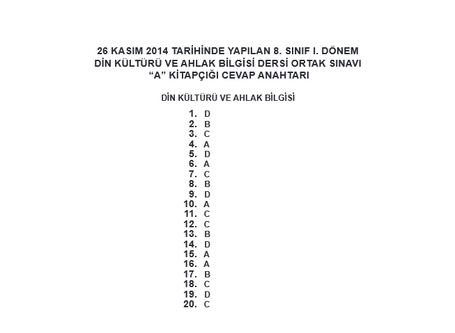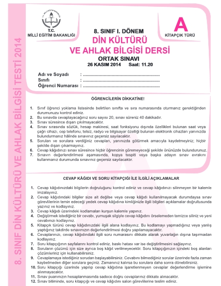 26 Kasım 2014 1. Dönem TEOG Soru ve Cevapları - Türkçe Matematik Din Kültürü