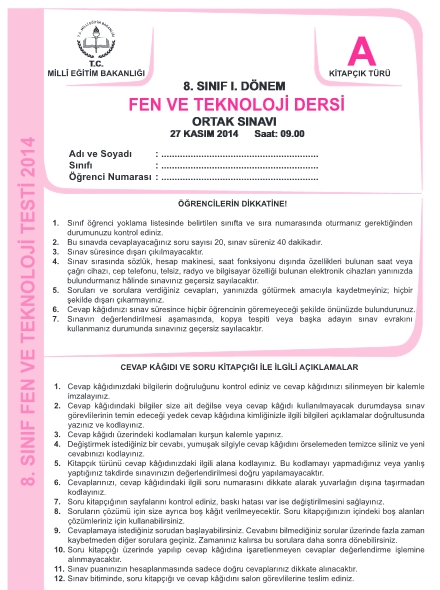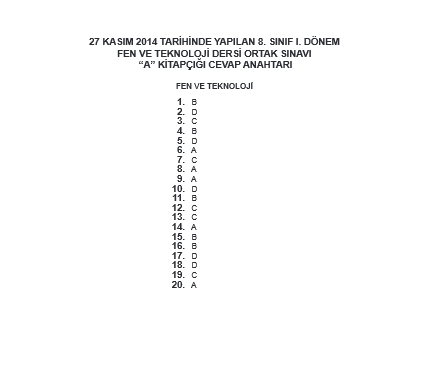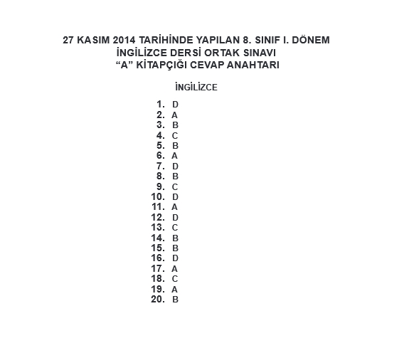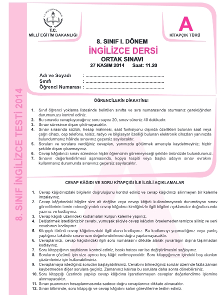 27 Kasım 2014 1. Dönem TEOG Soru ve Cevapları - Fen İnkilap Tarihi İngilizce