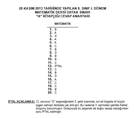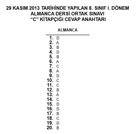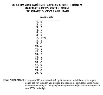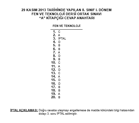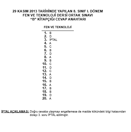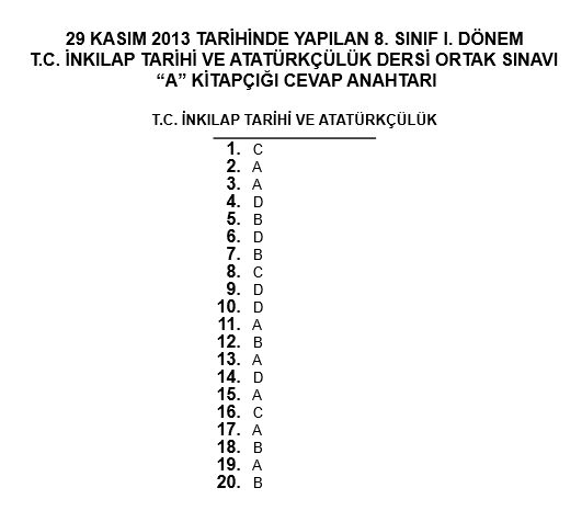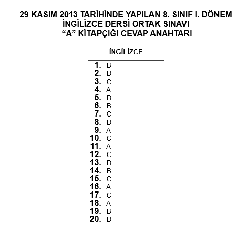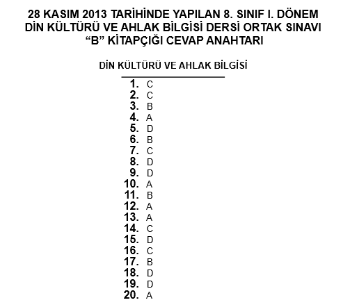 28-29 Kasım 8. Sınıf TEOG Ortak Sınav Cevap Anahtarı