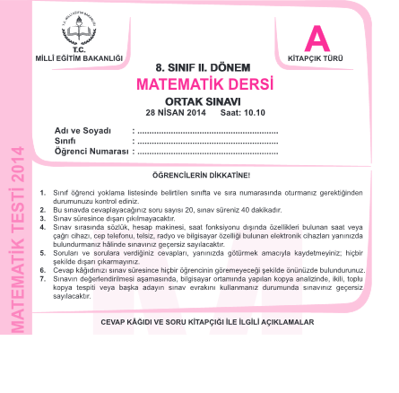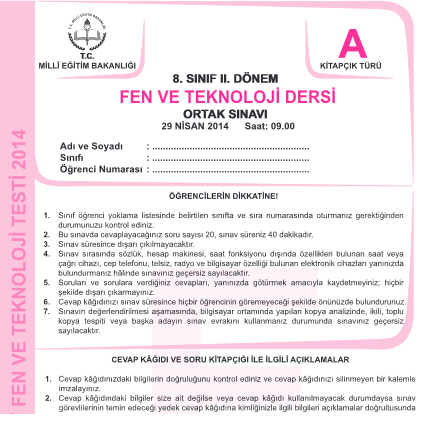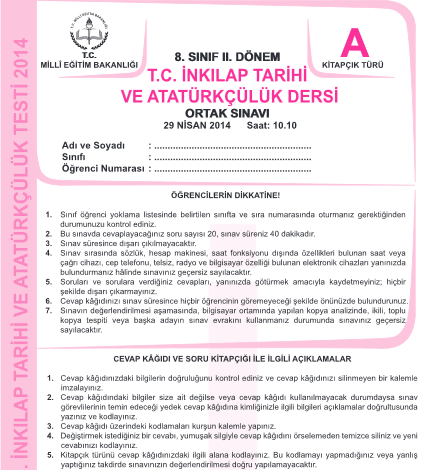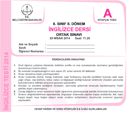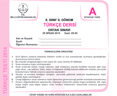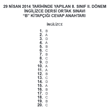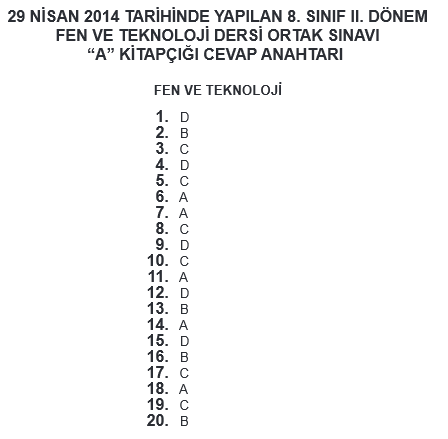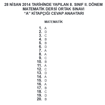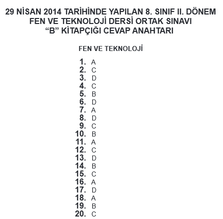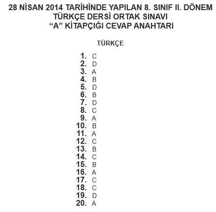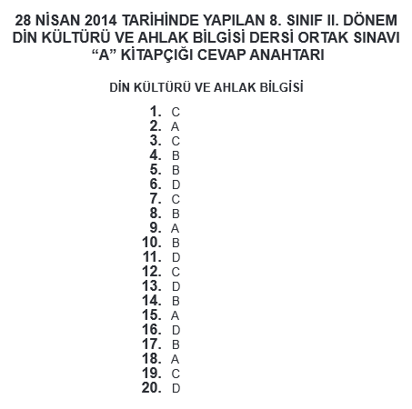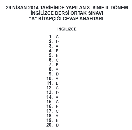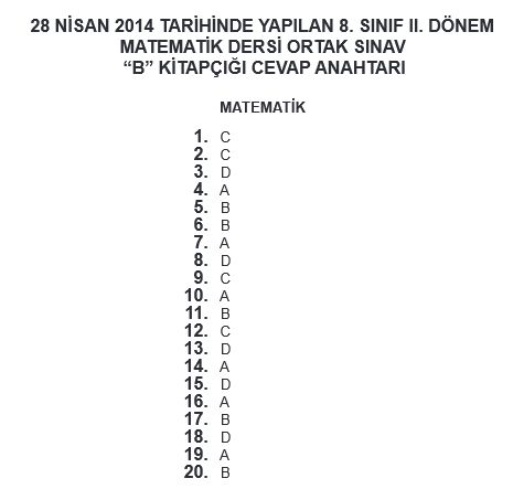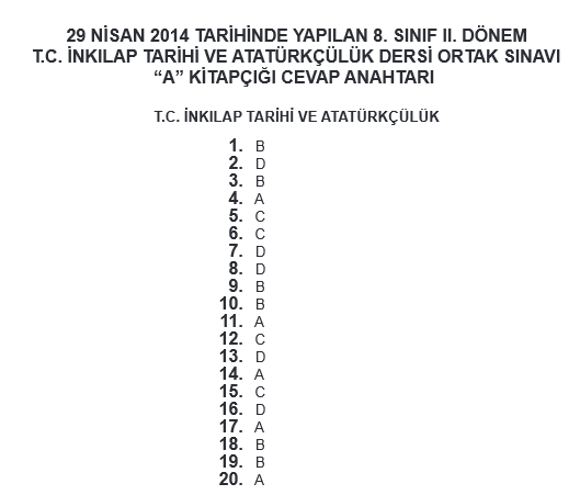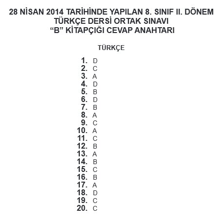 28-29 Nisan 8. Sınıf TEOG Ortak Sınav Cevap Anahtarı