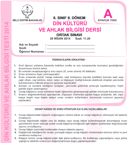 Din Kültürü Cevap Anahtarı A Kitapçığı